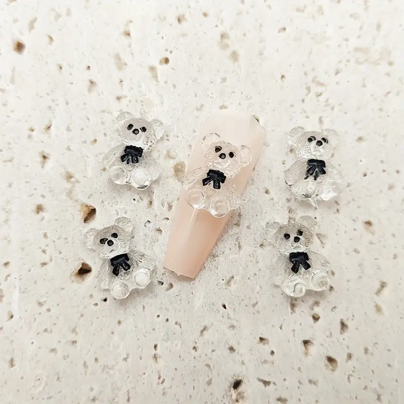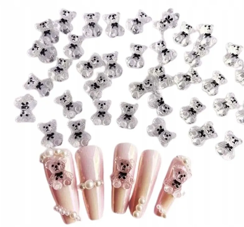 Unikalny design: Nasze ozdoby w kształcie misiów dostępne są kolorze przezroczystym, które wspaniale urozmaicą każdą stylizację paznokci.