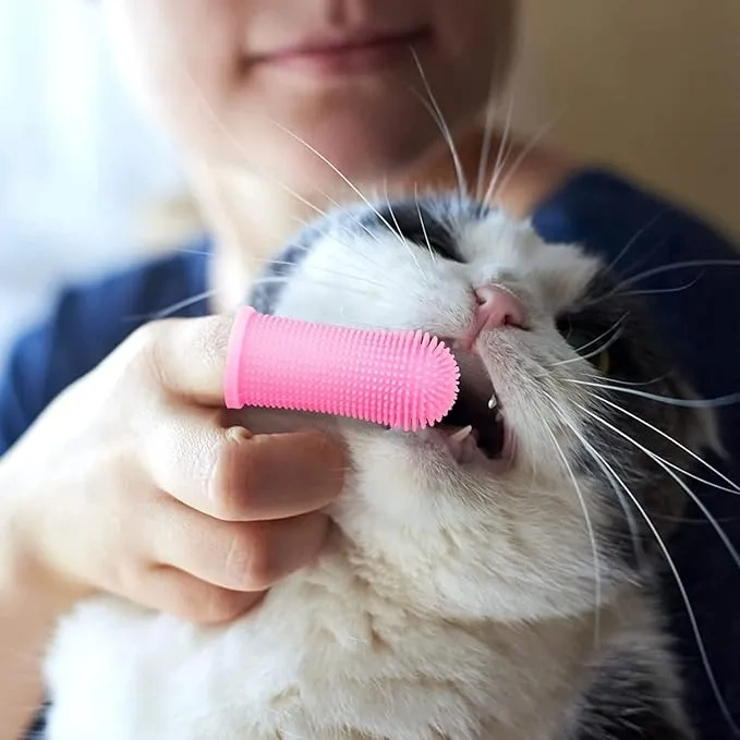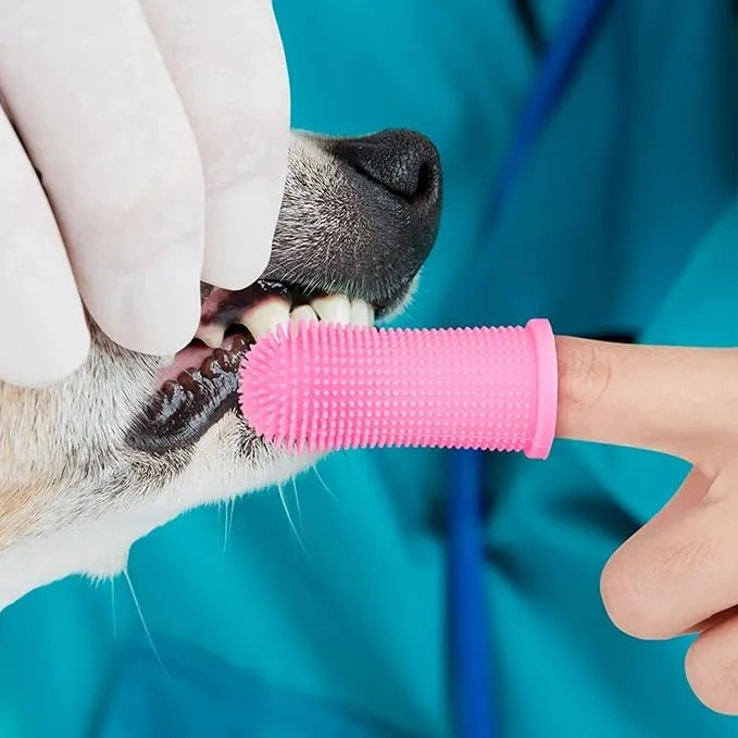 Silikonowa szczoteczka do mycia zębów dla zwierząt.