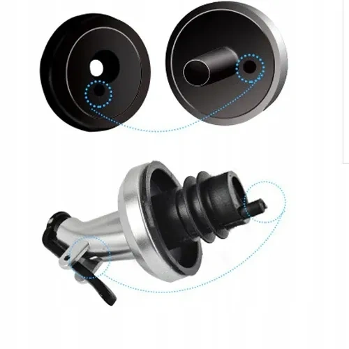 Korek nalewaka wykonany z gumy gwarantuje szczelność między nalewakiem, a szyjką butelki.