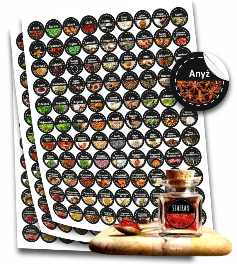 Kolorowe naklejki na przyprawy, wykonane z najwyższej jakości materiałów, odporne na zniszczenia będą służyć Ci przez wiele lat.