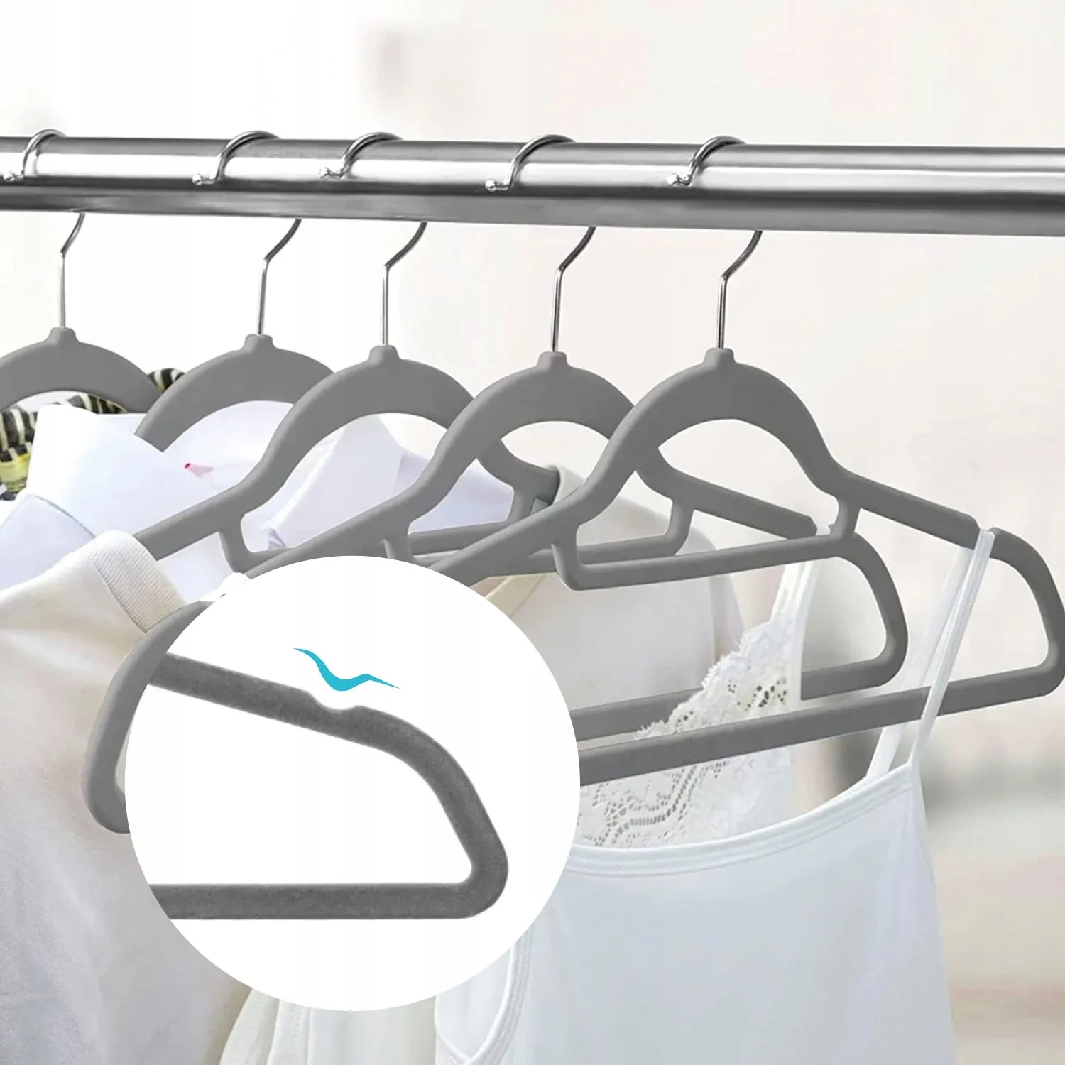 Welurowe wieszaki wykonane z najwyższej jakości materiału zapewniającego antypoślizgową powierzchnię.