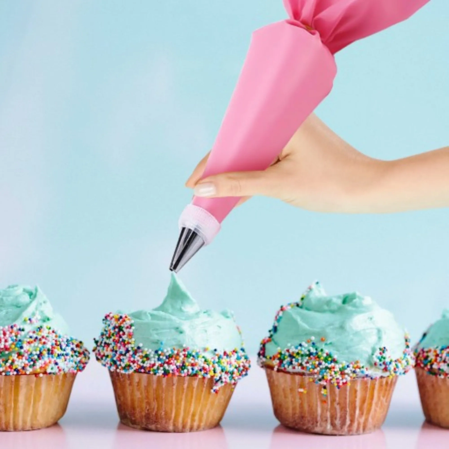 Silikonowy rękaw oraz łopatki wielokrotnego użytku wystarczy opłukać pod wodą z dodatkiem detergentu – stalowe końcówki nadają się do mycia w zmywarce!