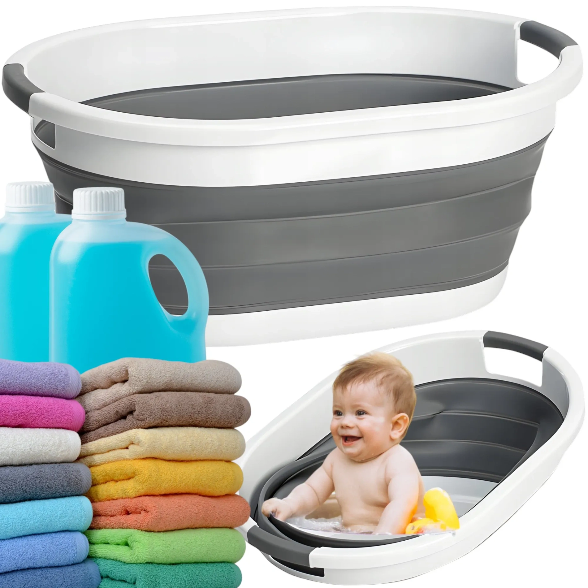 Doskonale sprawdza się w domu jako kosz na pranie, bieliznę czy miskę kąpielową dla dzieci, a także w podróży.