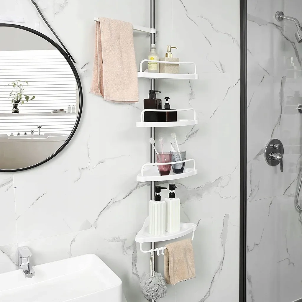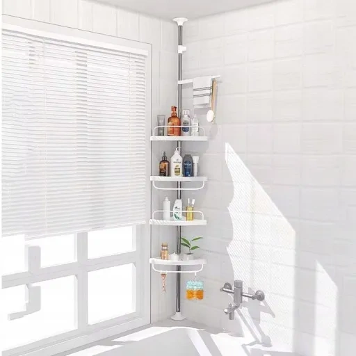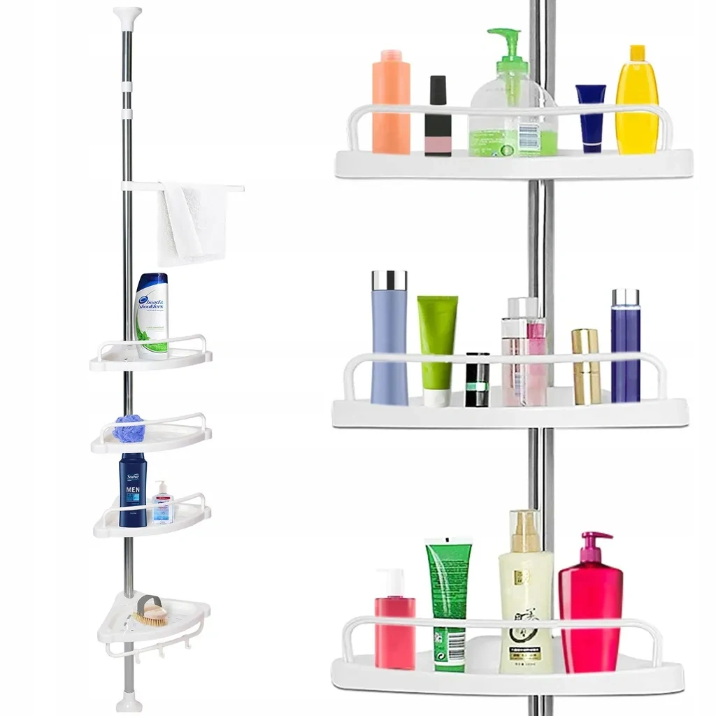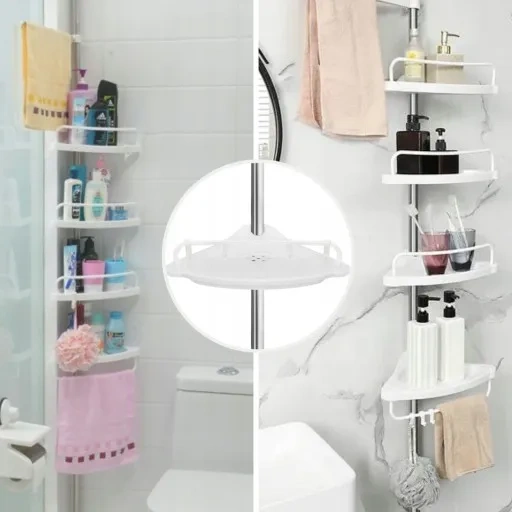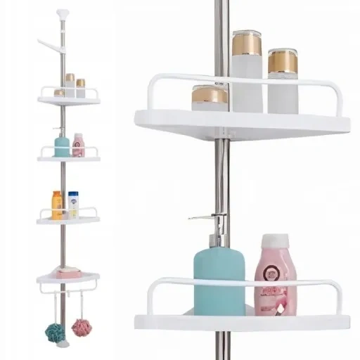 Wyposażony w cztery półki regał oferuje obszerną przestrzeń do przechowywania kosmetyków, ręczników i innych niezbędnych akcesoriów łazienkowych.