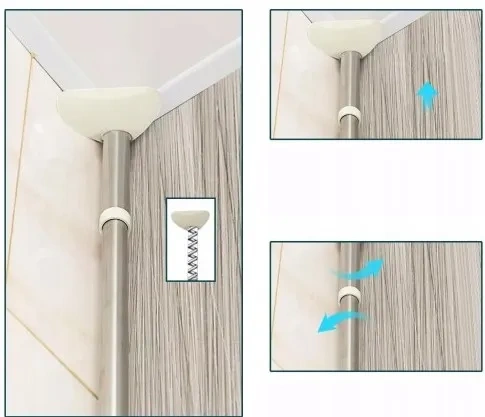 Drążek rozporowy umożliwia sprawne i łatwe zamontowanie całego zestawu, a stopki z gumowymi, bieżnikowanymi nakładkami sprawiają,