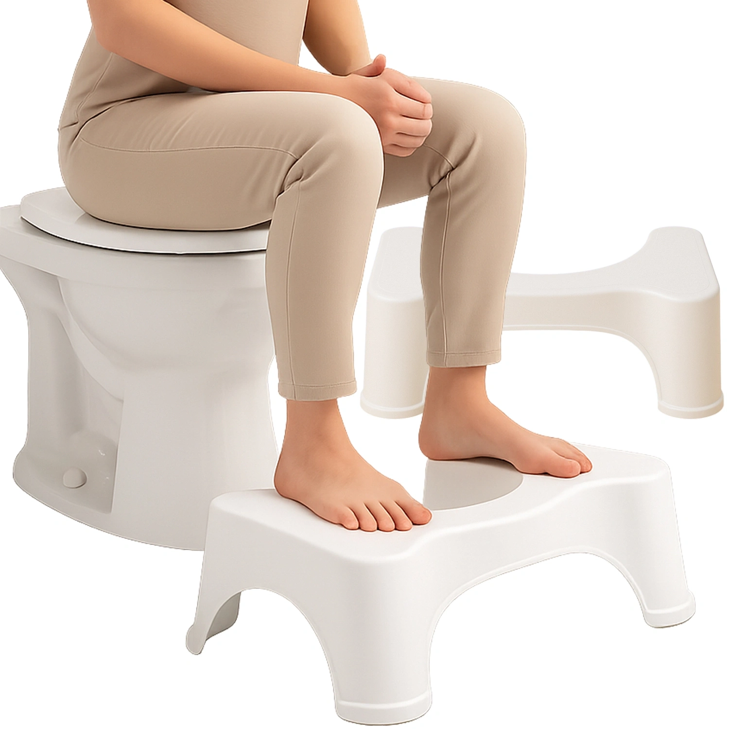 Podnóżek toaletowy to narzędzie pomagające w przybraniu prawidłowej pozycji ciała w czasie z korzystania z toalety.