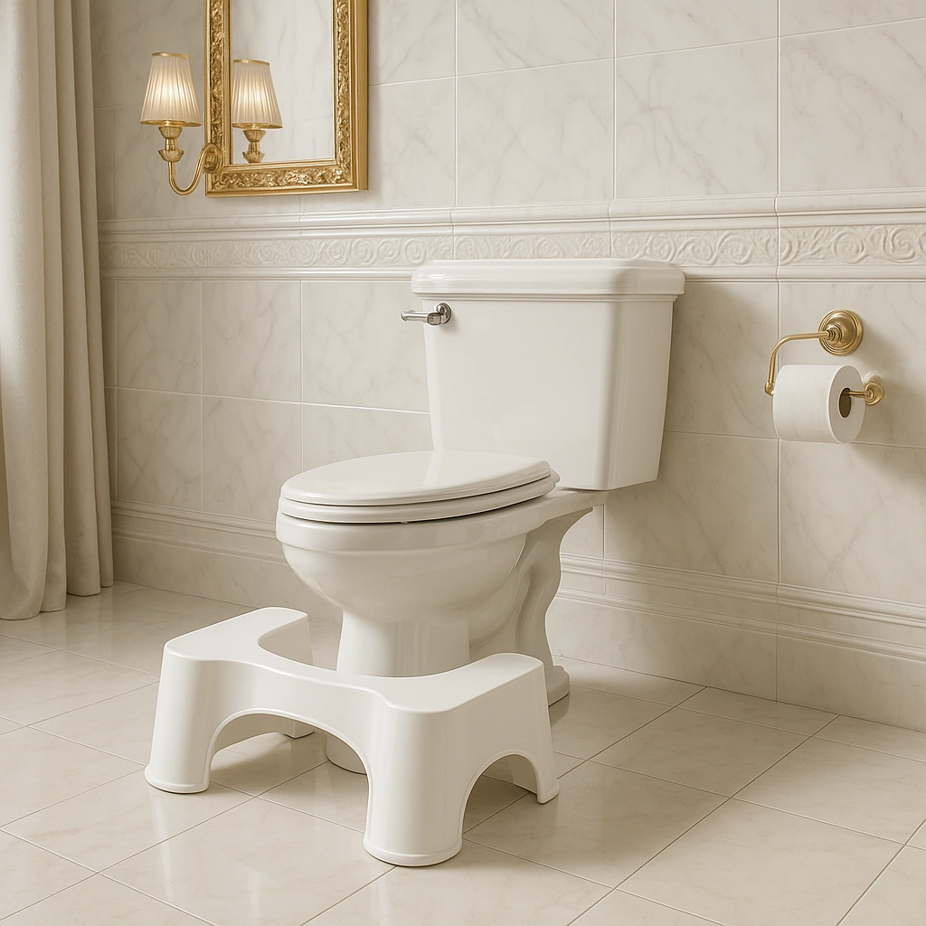 Koryguje postawę podczas korzystania z toalety, dzięki czemu wypróżnienie jest łatwiejsze.