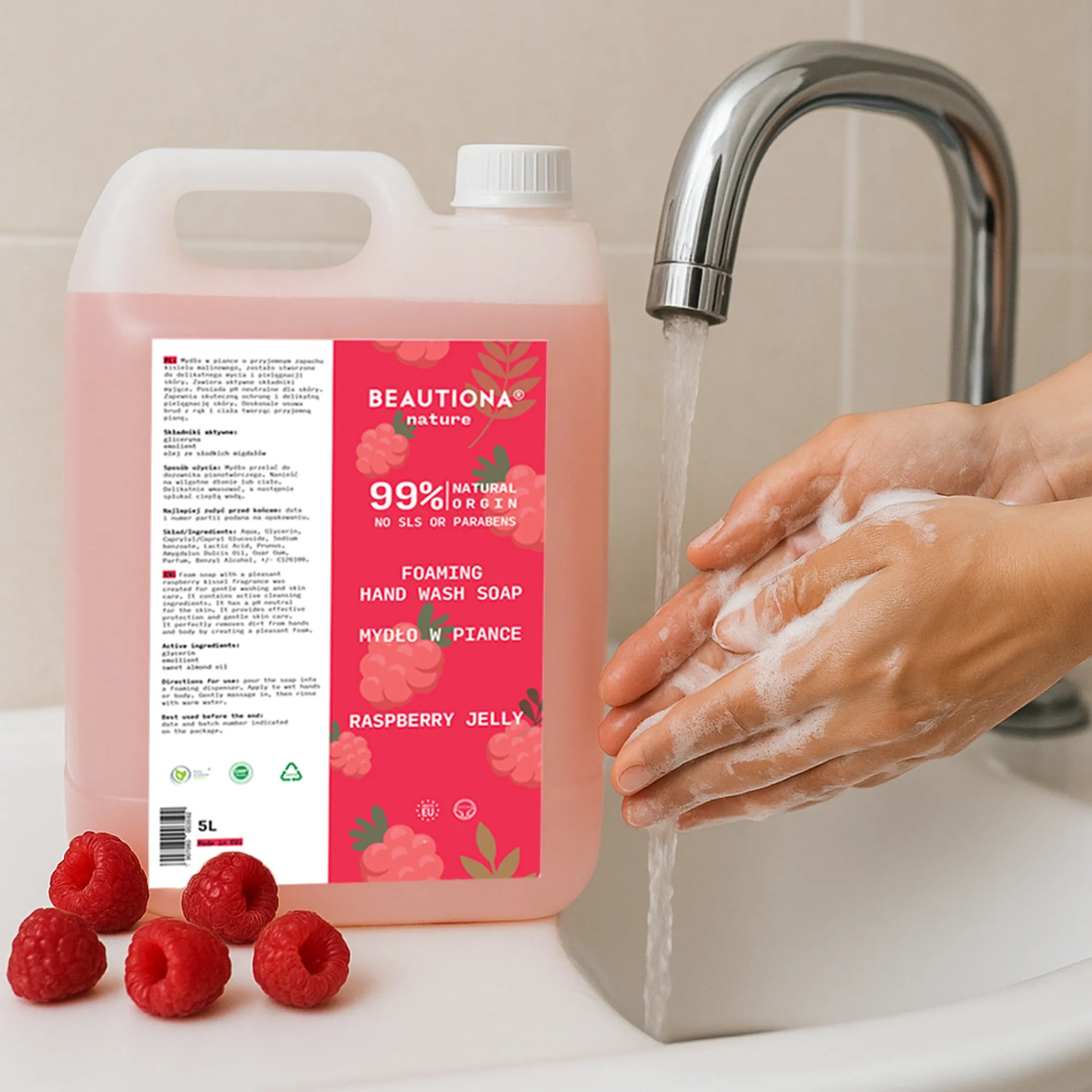 Beautiona mydło malinowy kisiel to produkt, którego receptura oparta jest między innymi na naturalnym mydle, bezpiecznych składnikach pielęgnujących oraz hipoalergicznych kompozycjach zapachowych, zapewniająca komfort pielęgnacji na co dzień.