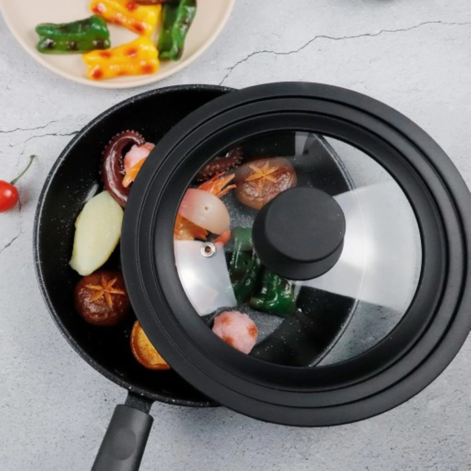 Szczelna silikonowa obwódka – elastyczny i wytrzymały silikon na krawędziach pokrywki gwarantuje doskonałe dopasowanie do różnych naczyń, minimalizując utratę ciepła i ryzyko rozlania. Dzięki odporności na wysokie temperatury zapewnia trwałość i długą żywotność produktu.
