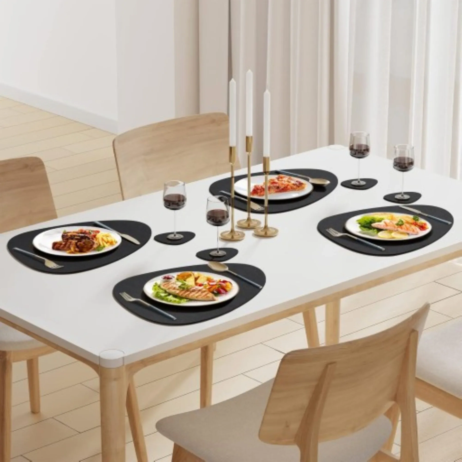 Zestaw wodoodpornych podkładek na stół – elegancka ochrona powierzchni podczas posiłków.