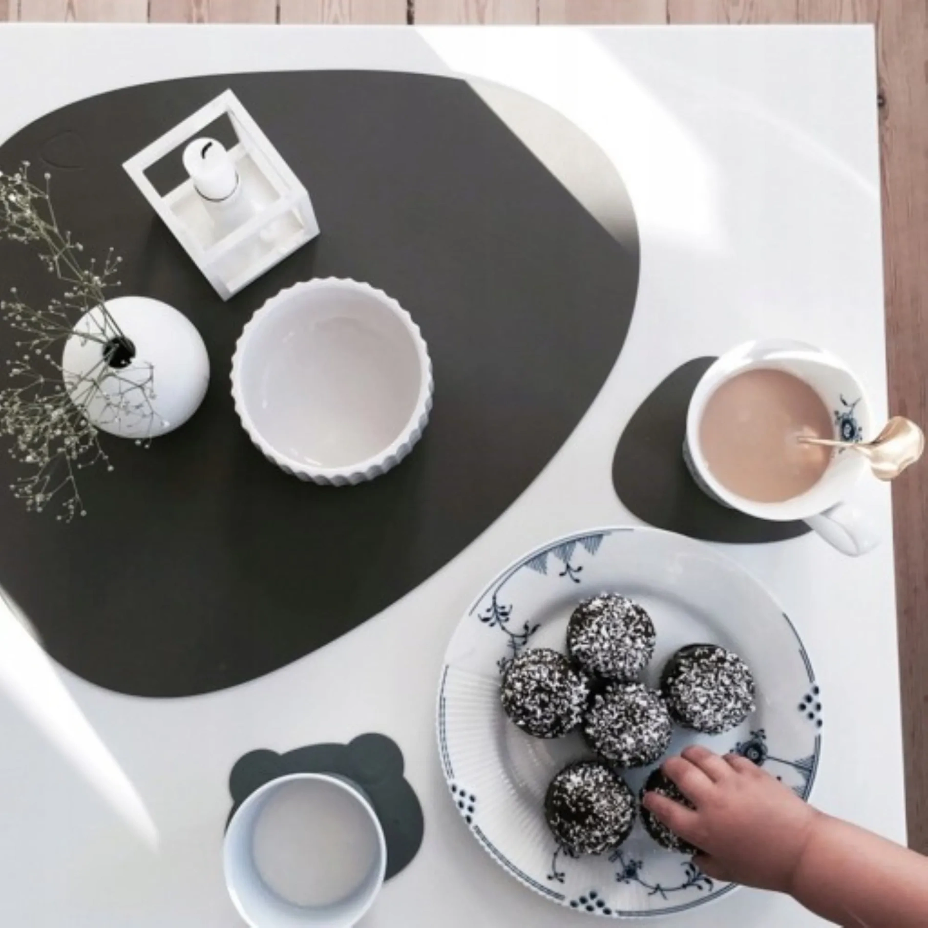Zestaw składa się z 8 podkładek: 4 dużych pod talerze oraz 4 mniejszych pod kubki.