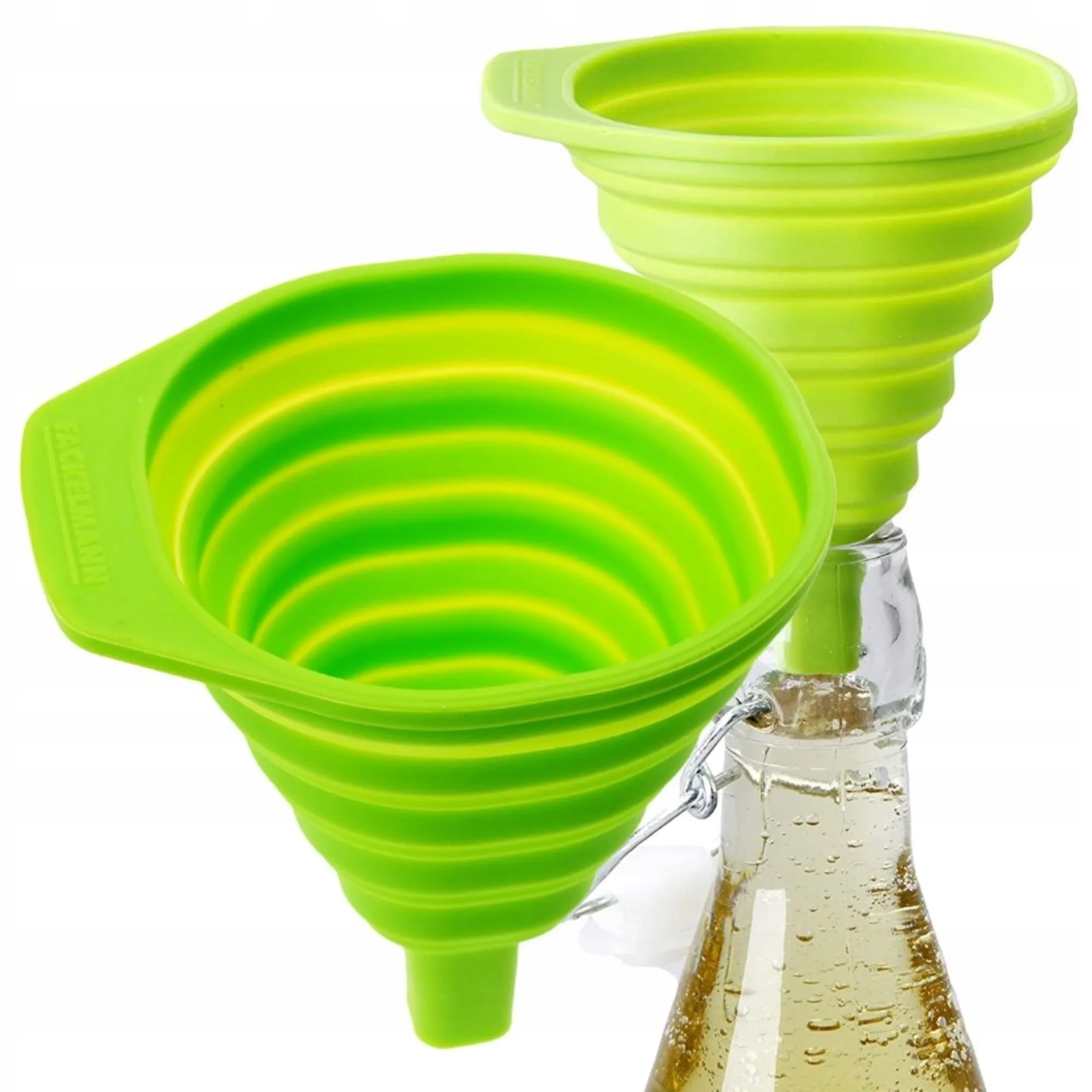 Elastyczny materiał ułatwia dopasowanie lejka do różnych naczyń, a jego zielony kolor dodaje estetyki kuchennym akcesoriom.