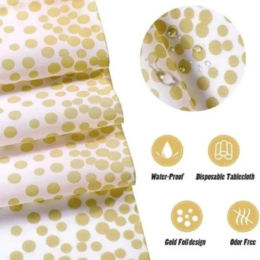 Stylowy obrus foliowy w kolorze czarnym z eleganckimi złotymi kropkami to doskonały wybór na różnego rodzaju przyjęcia, urodziny czy inne uroczystości.