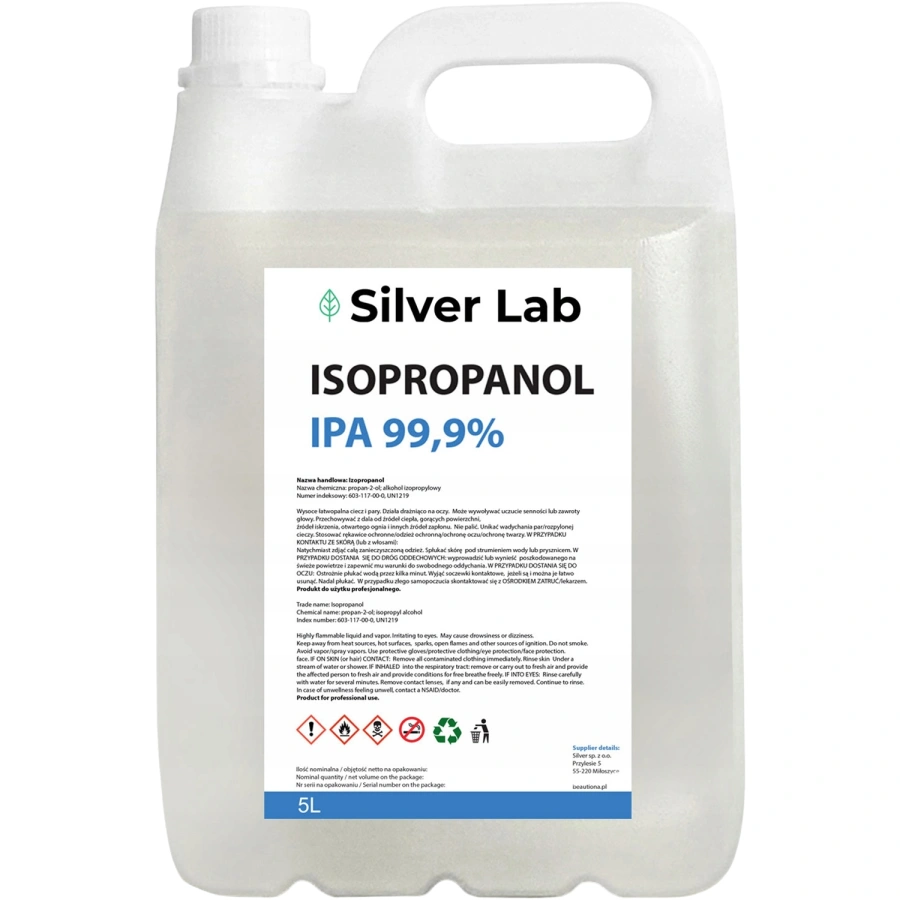 Najwyższej jakości alkohol izopropylowy 99,9%, przeznaczony do zastosowań kosmetycznych oraz przemysłowych.