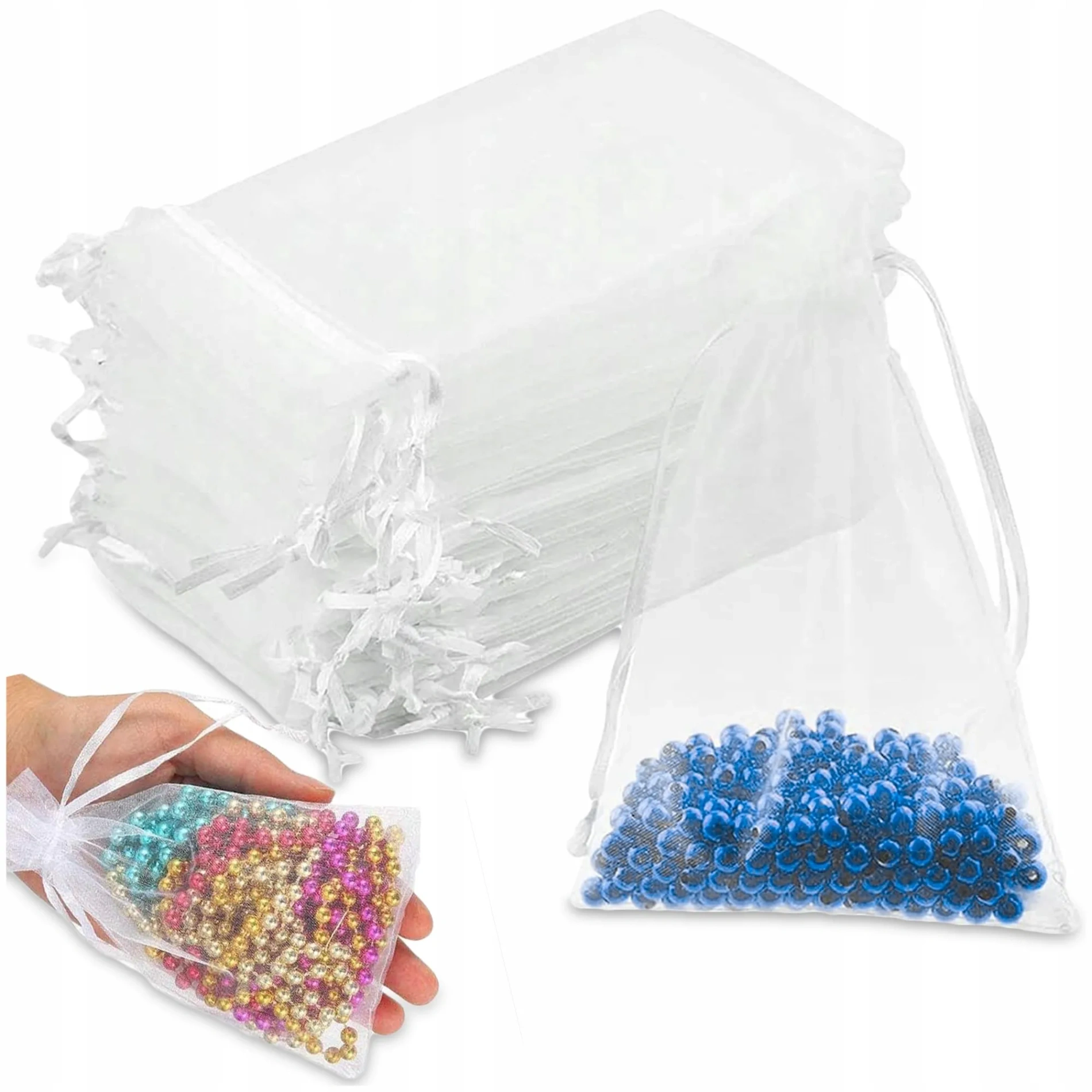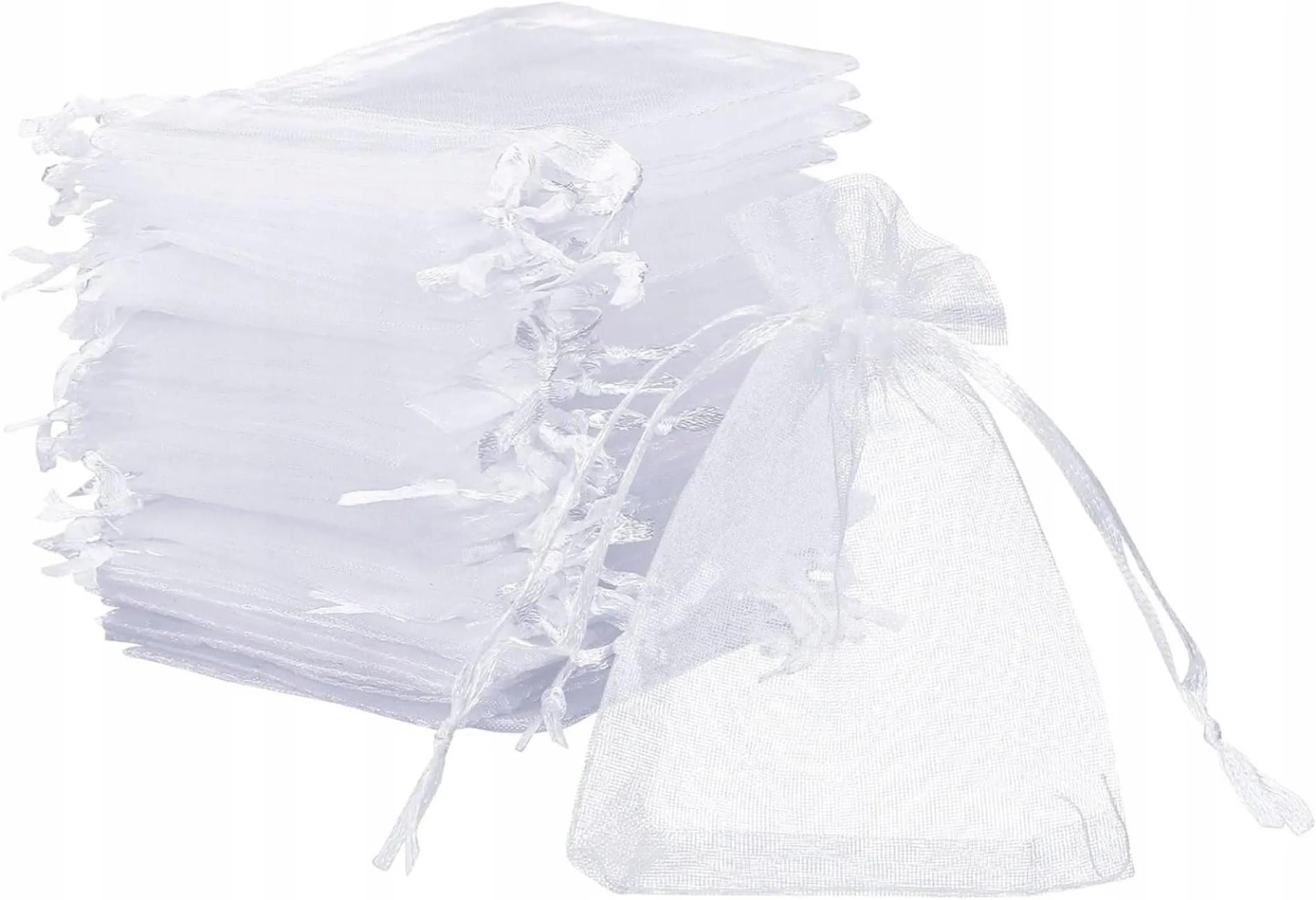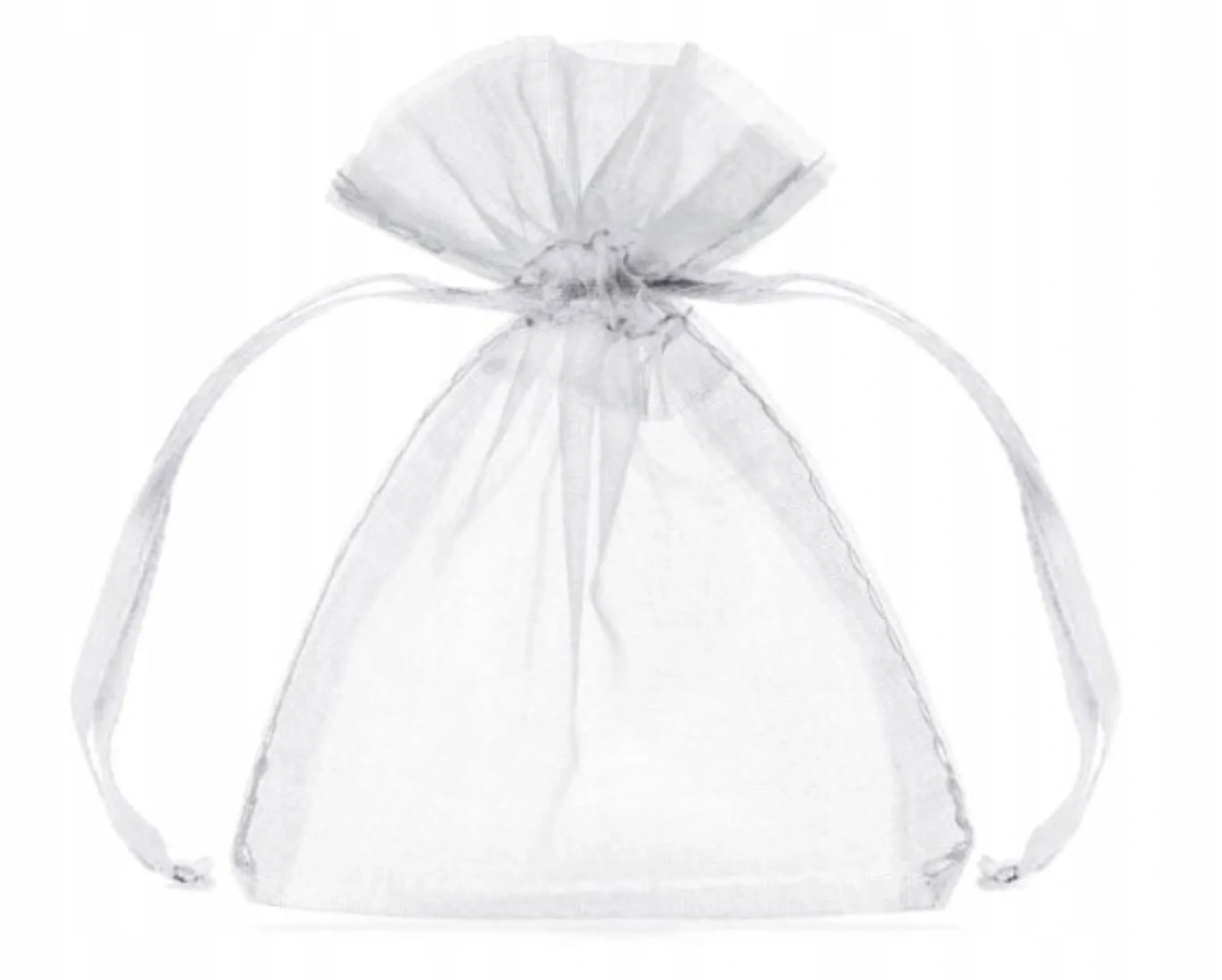 Estetyczne wykonanie: Przezroczysta, lekko błyszcząca organza z satynowym sznurkiem do zaciągania.