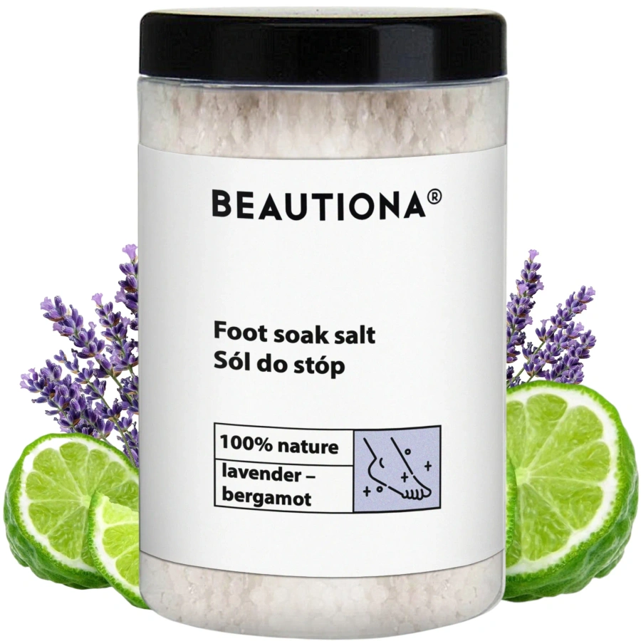 Naturalna sól do kąpieli stóp z dodatkiem siarczanu magnezu (sól Epsom), lawendy i bergamotki to idealne rozwiązanie dla osób, które pragną zadbać o zmęczone, opuchnięte lub przesuszone stopy.