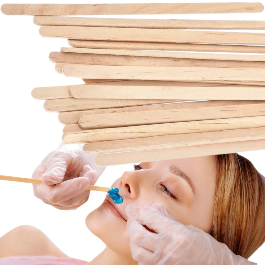 Drewniane, nie jałowe szpatułki idealne do precyzyjnej pracy przy depilacji np. brwi, bikini, pachy, wąsiku.