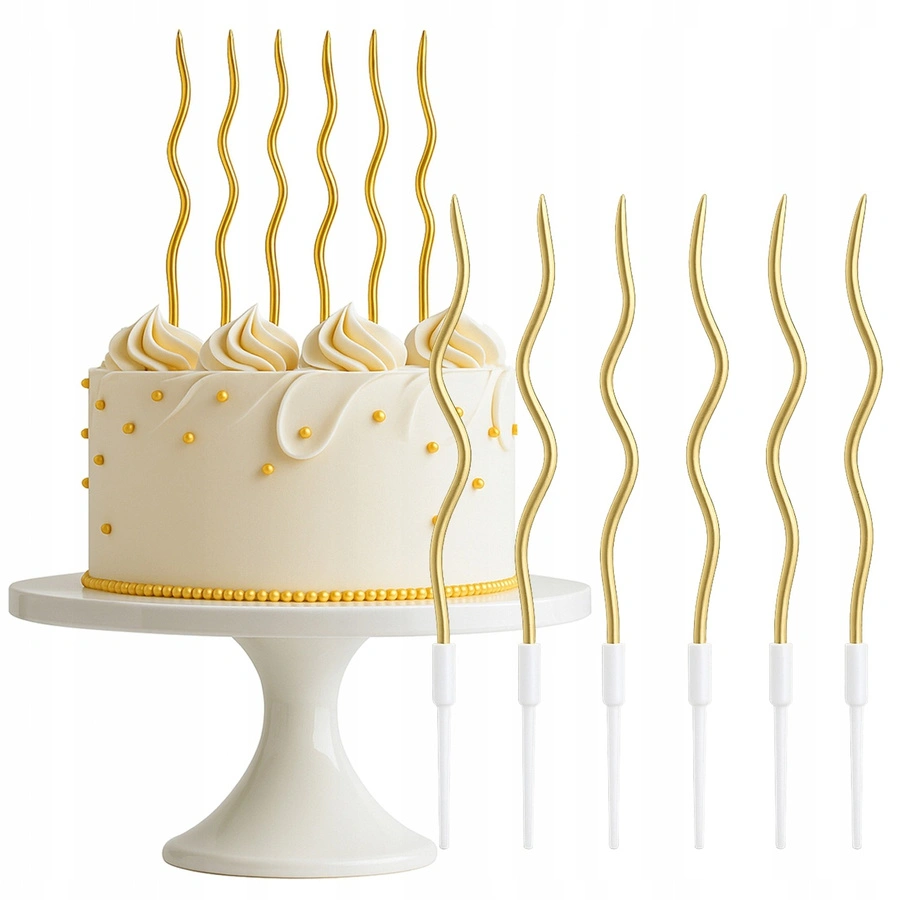 Złote faliste świeczki urodzinowe – elegancki dodatek, który doda blasku każdemu tortowi!