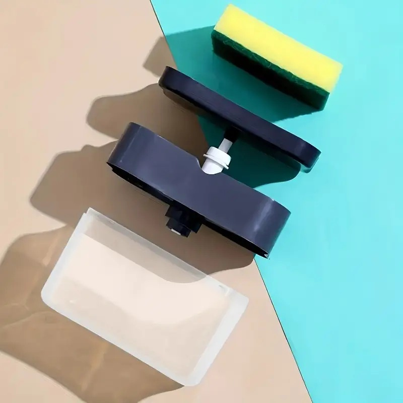 Zadbaj o porządek i wygodę w swojej kuchni dzięki praktycznemu dozownikowi na płyn do naczyń z pojemnikiem na gąbki.