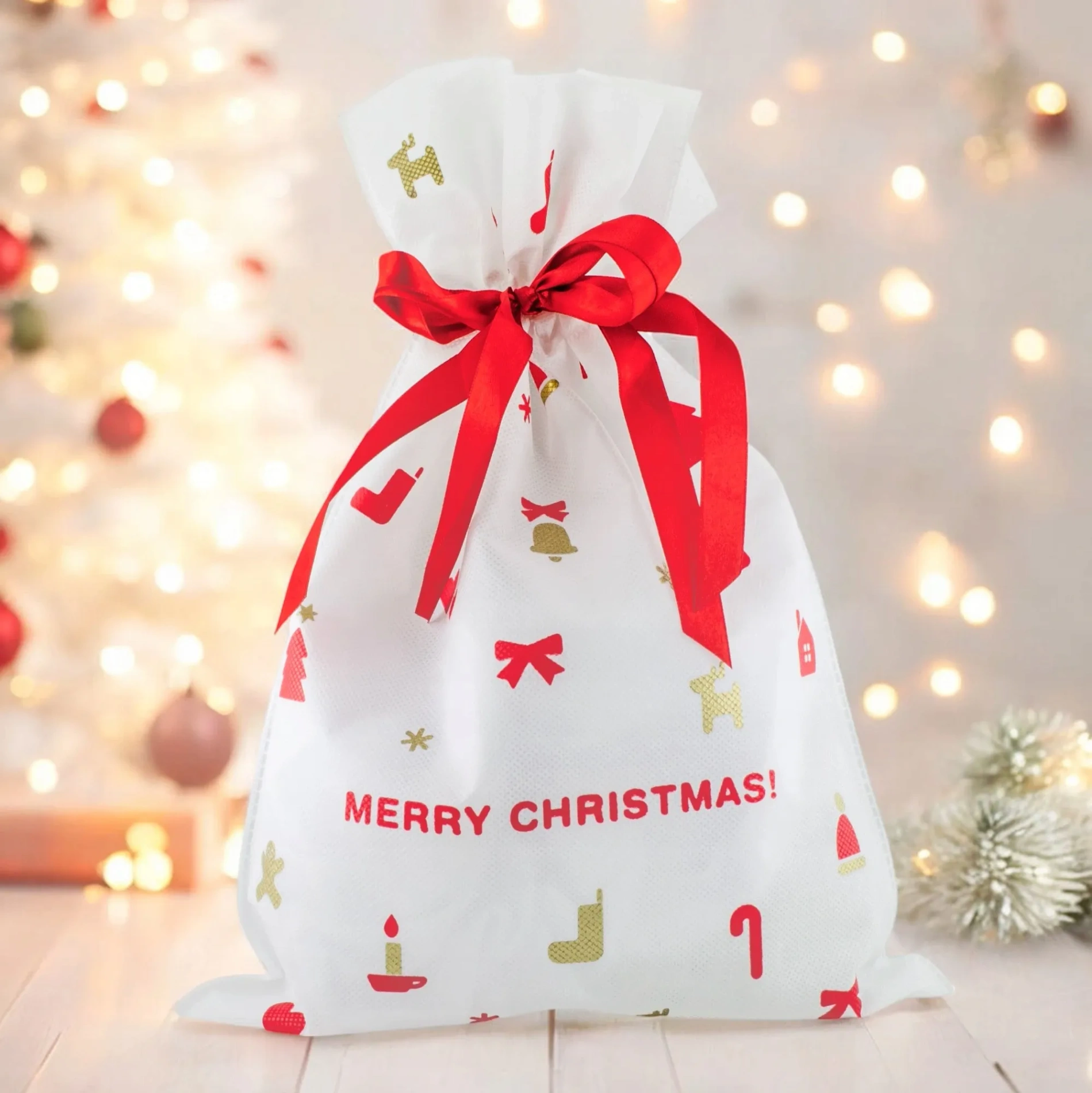 Dzięki estetycznemu opakowaniu w świąteczny worek nie trzeba martwić się o dodatkowe przygotowania do wręczenia prezentu.