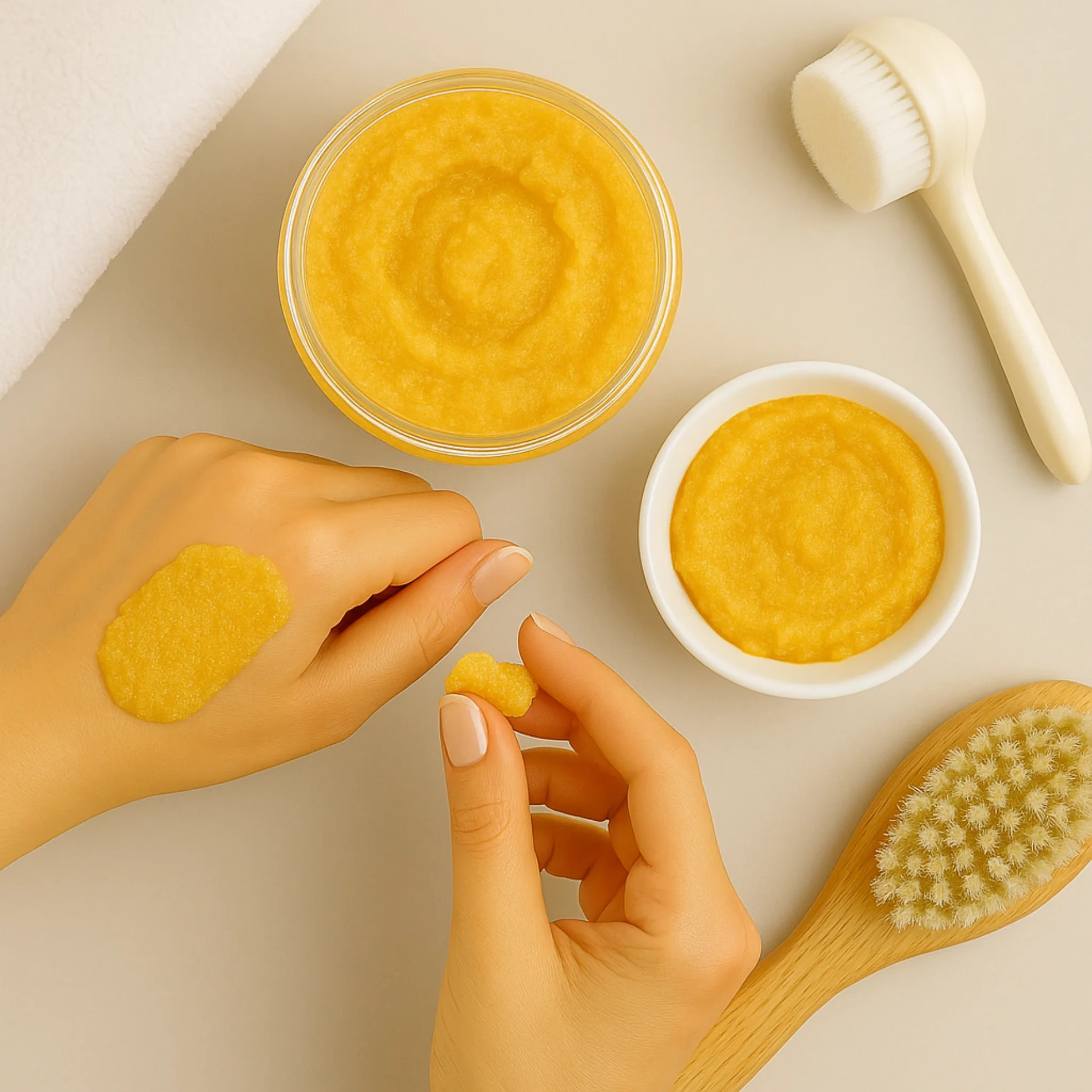 Odkryj tropikalną pielęgnację z naszym cukrowym peelingiem o zapachu soczystego mango.