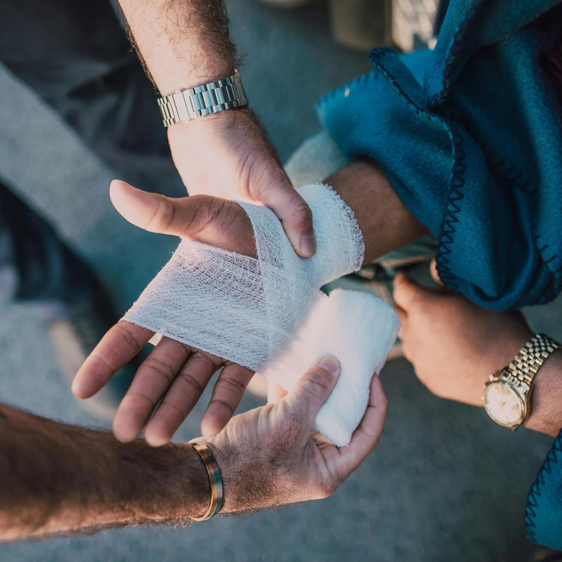 Bandaż dziany to lekki, przewiewny materiał opatrunkowy przeznaczony do podtrzymywania opatrunków oraz zabezpieczania miejsc po urazach.