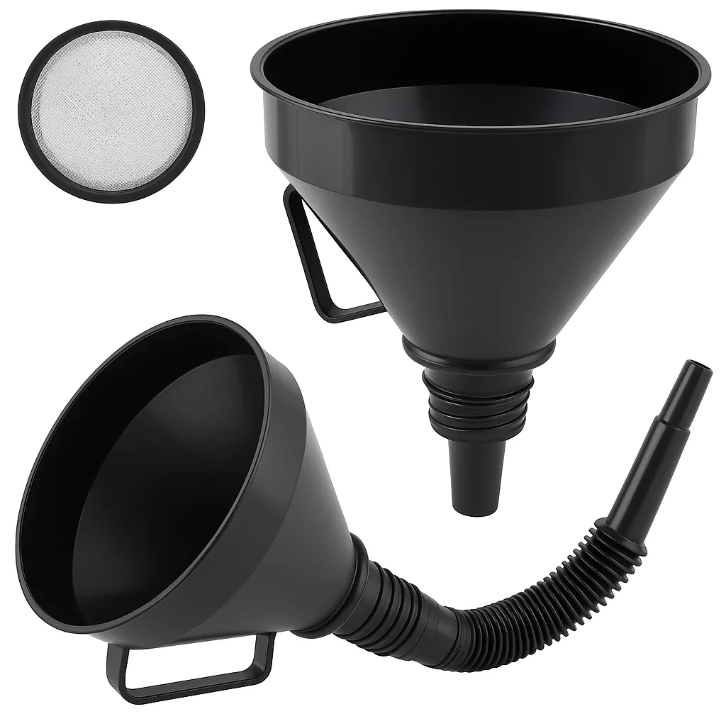 Lejek samochodowy z wbudowanym sitkiem to praktyczne narzędzie do czystego i bezpiecznego przelewania paliwa, oleju oraz innych płynów eksploatacyjnych.