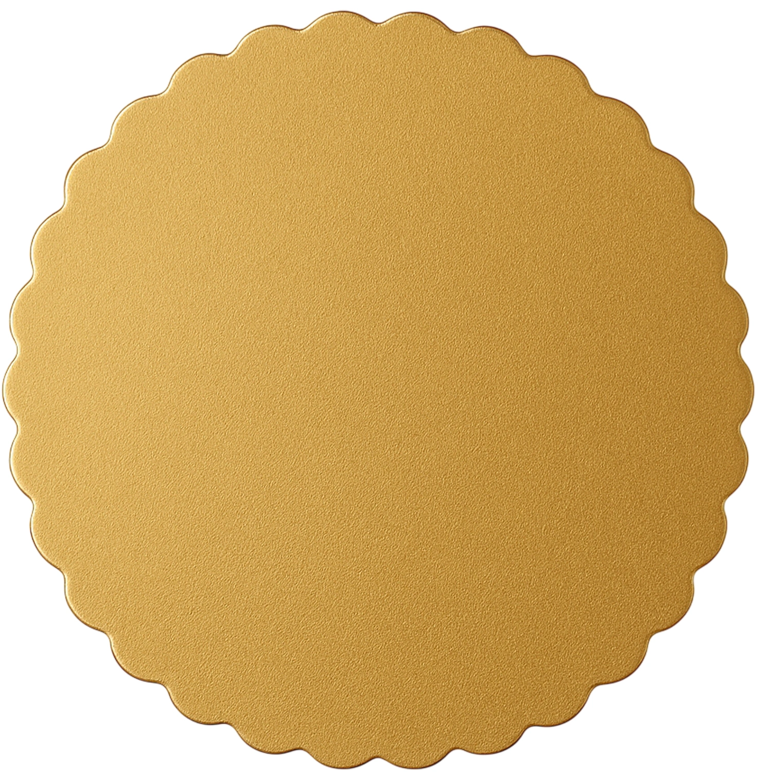 Wytrzymały, gruby i sztywny podkład pod tort w kolorze złotym idealnie sprawdzi się do eksponowania i przenoszenia ciast, deserów i tortów. Dzięki solidnej konstrukcji i karbowanej powierzchni zapewnia stabilność oraz elegancki wygląd.