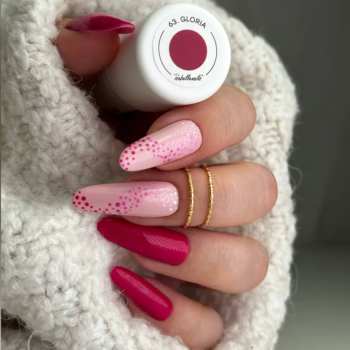 Lakier hybrydowy 63. Gloria to wyrazisty odcień różu, który wyróżnia się swoją intensywnością.