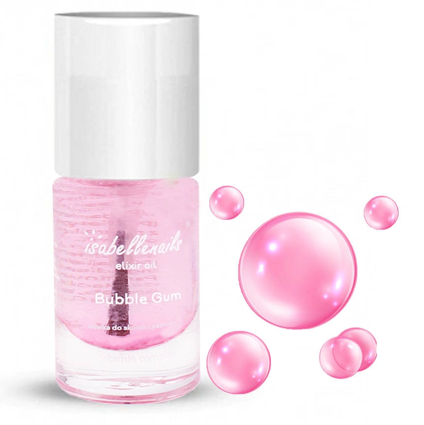 Oliwka isabellenails o pysznym zapachu gumy balonowej zawiera dobroczynne składniki pielęgnacyjne.