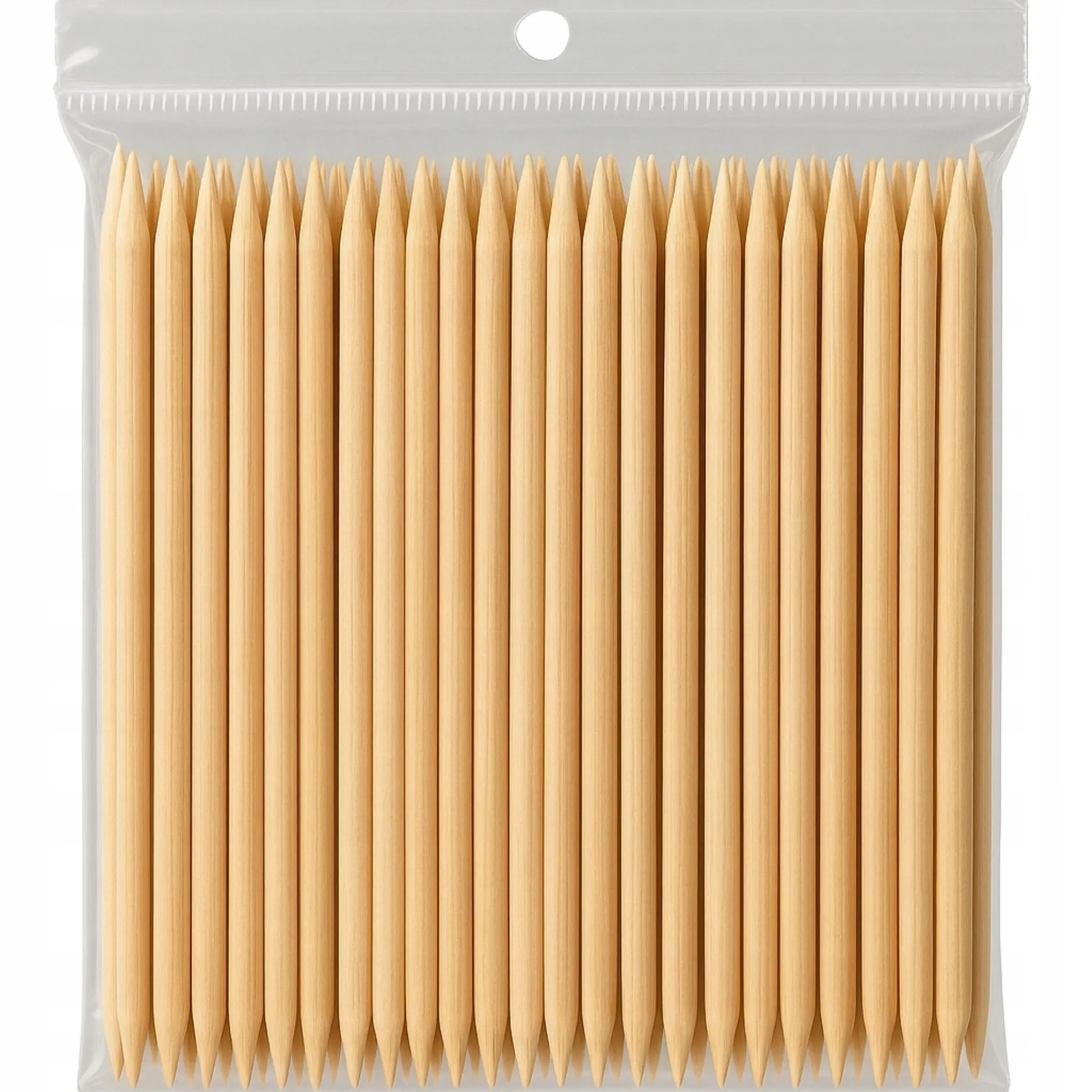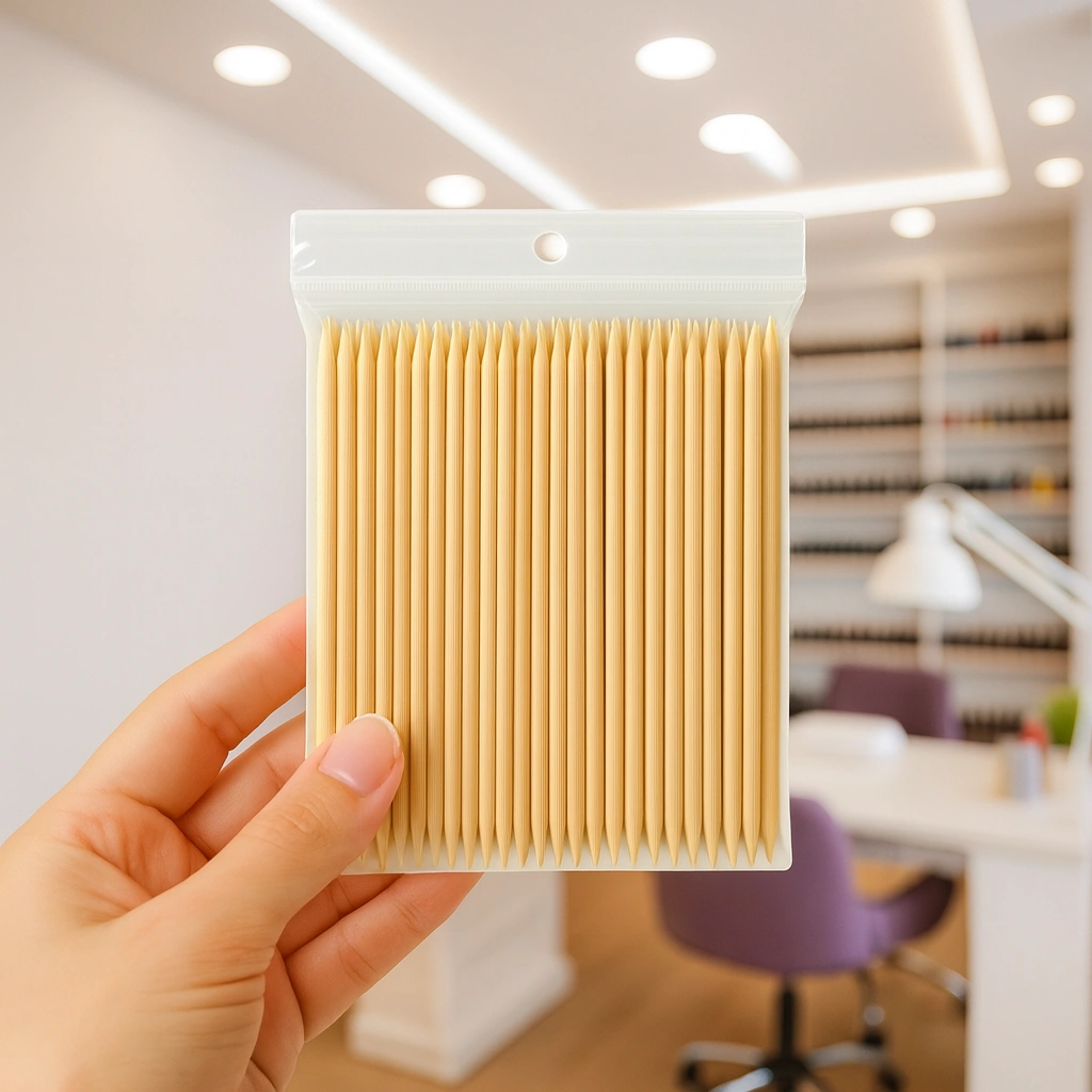Drewniane patyczki do skórek to podstawowe narzędzie wykorzystywane podczas manicure i pedicure. Umożliwiają delikatne odsuwanie skórek, precyzyjne oczyszczanie paznokci oraz dokładne usuwanie pozostałości produktów stylizacyjnych. Wykonane z naturalnego drewna pomarańczowego, są lekkie, wytrzymałe i bezpieczne dla płytki paznokcia. Dzięki gładko polerowanej powierzchni nie powodują zadziorów ani podrażnień, co znacząco zwiększa komfort pracy. Dwustronne końcówki – ostra i skośna – zapewniają szerokie możliwości zastosowania. Patyczki doskonale sprawdzą się do pracy z żelem, hybrydą i akrylem, a także do precyzyjnych poprawek podczas stylizacji paznokci. Produkt przeznaczony jest zarówno do profesjonalnych salonów kosmetycznych, jak i do użytku domowego. Jednorazowy charakter patyczków sprzyja zachowaniu wysokiego poziomu higieny pracy.