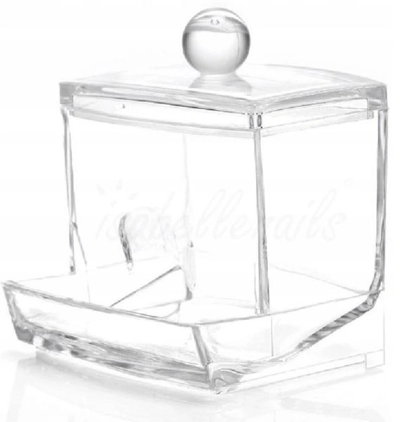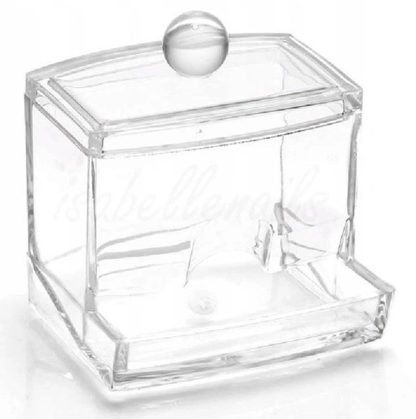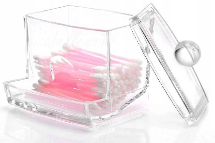 Przezroczysty pojemnik z podajnikiem do przechowywania i organizacji patyczków do uszu.