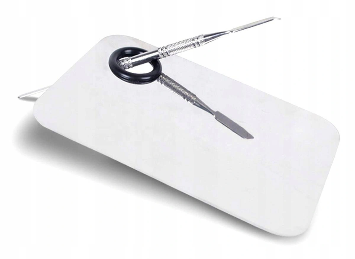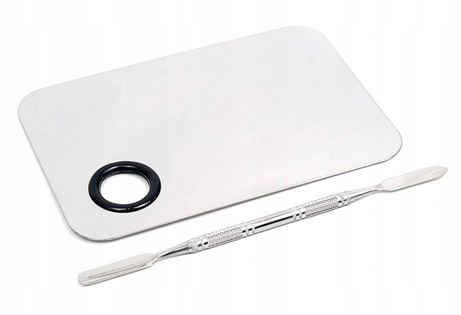 Ta mała, metalowa paletka ze szpatułką pozwoli ci na mieszanie dowolnych produktów: pomadek, aby otrzymać odcień, którego szukasz, cieni do powiek, henny do brwi i każdego innego kosmetyku w kremowej lub płynnej formie.