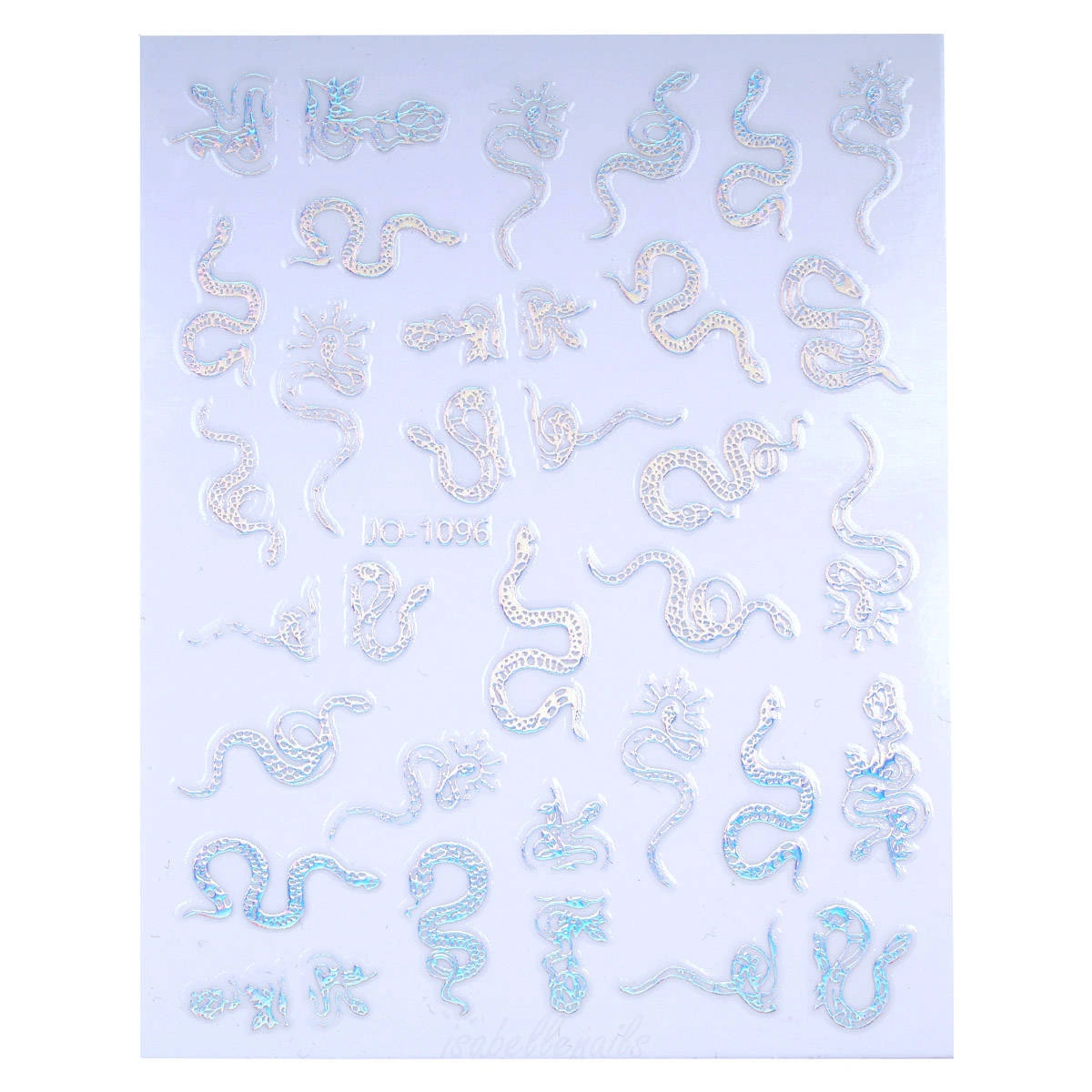 Stwórz na paznokciach piękną stylizację dzięki mieniącym się naklejkom z motywem węży.