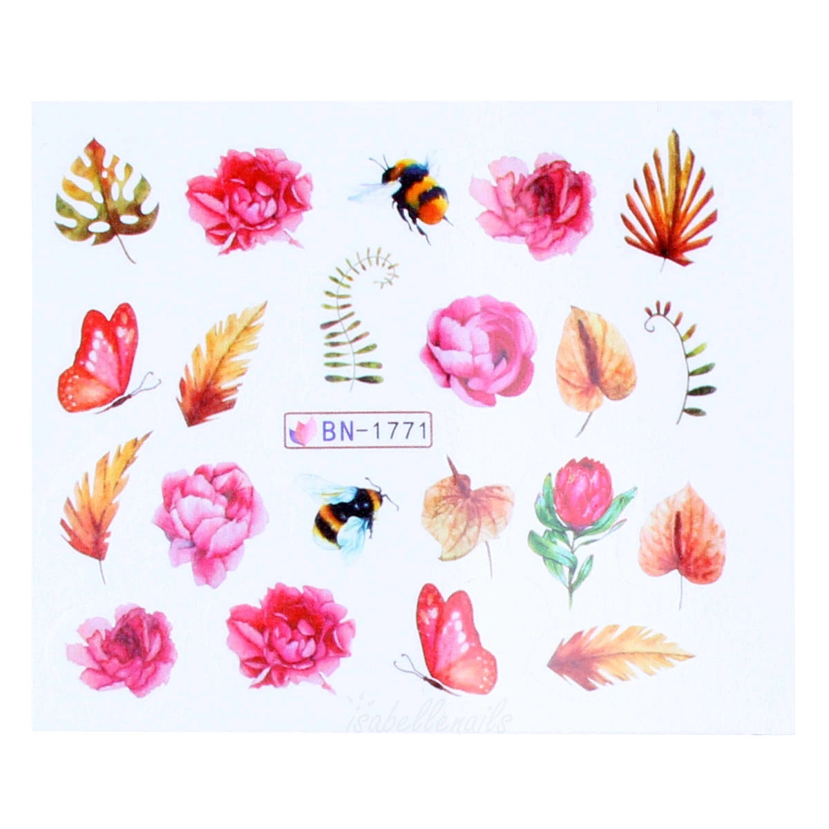 Naklejki wodne na paznokcie kwiaty BN-1771