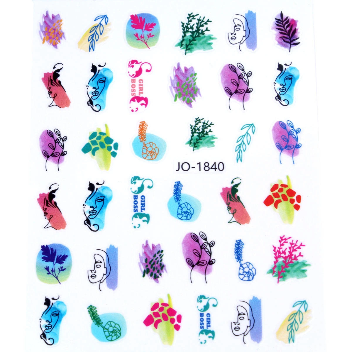 Naklejki 3D na paznokcie twarze line art JO-1840