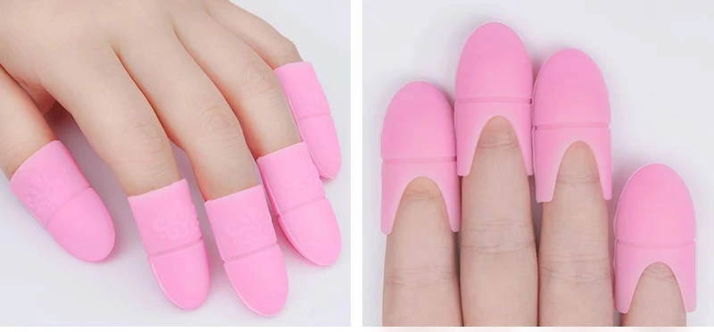 • 5 sztuk silikonowych czapeczek do usuwania lakieru w kolorze różowym