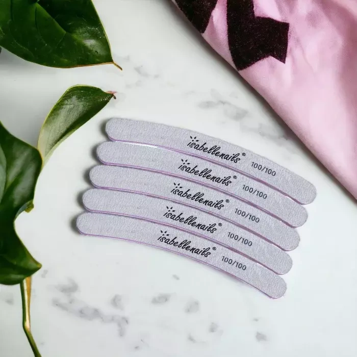 Pilnik do paznokci w kształcie banana o gradacji 100/100 do użytku profesjonalnego.