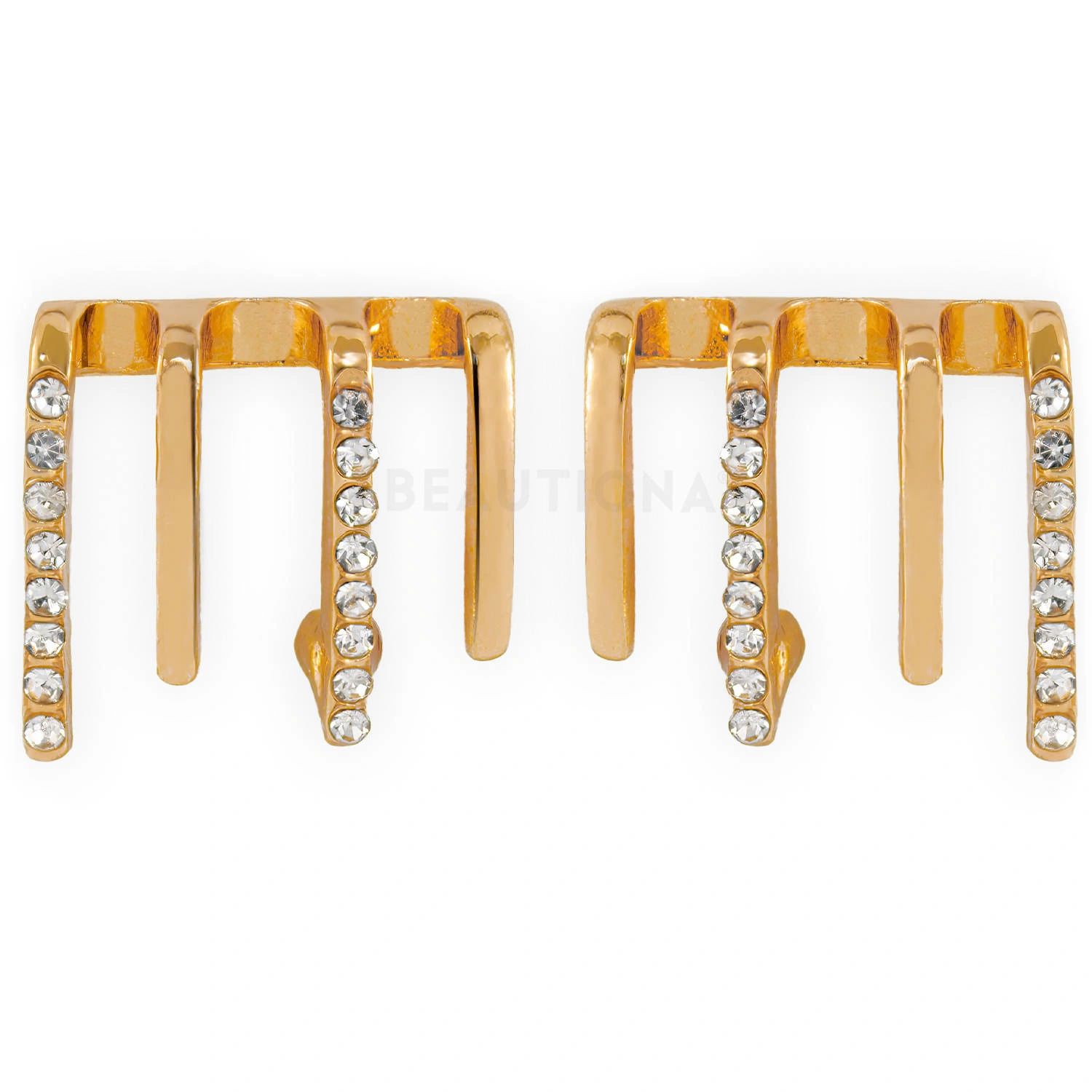 Kolczyki w złotym kolorze mają elegancki, a przy tym nietuzinkowy kształt.