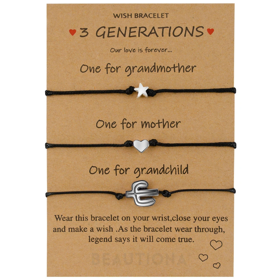 Zestaw 3 bransoletek na czarnym sznurku dla babci mamy i wnuczki