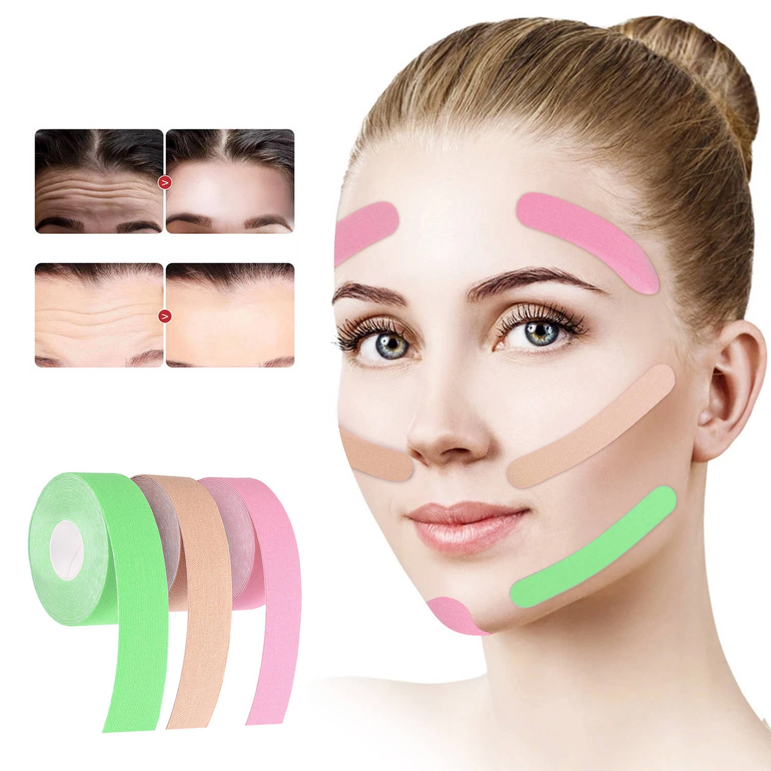 Kinesiotape to rodzaj elastycznej taśmy samoprzylepnej, która służy do podtrzymywania skóry w celu zmniejszenia widoczności zmarszczek.