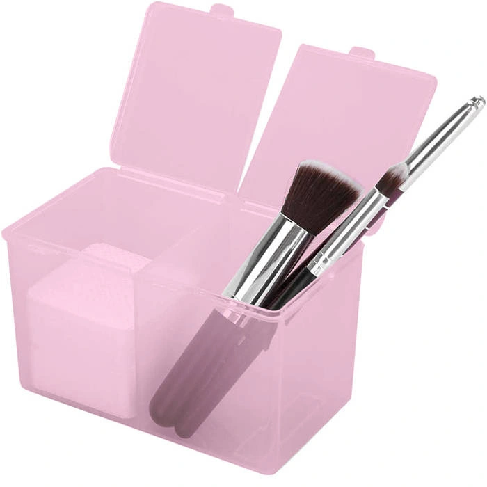 Uniwersalny pojemnik do przechowywania wielu kosmetycznych narzędzi, akcesoriów czy wacików do twarzy o dwóch przegródkach.