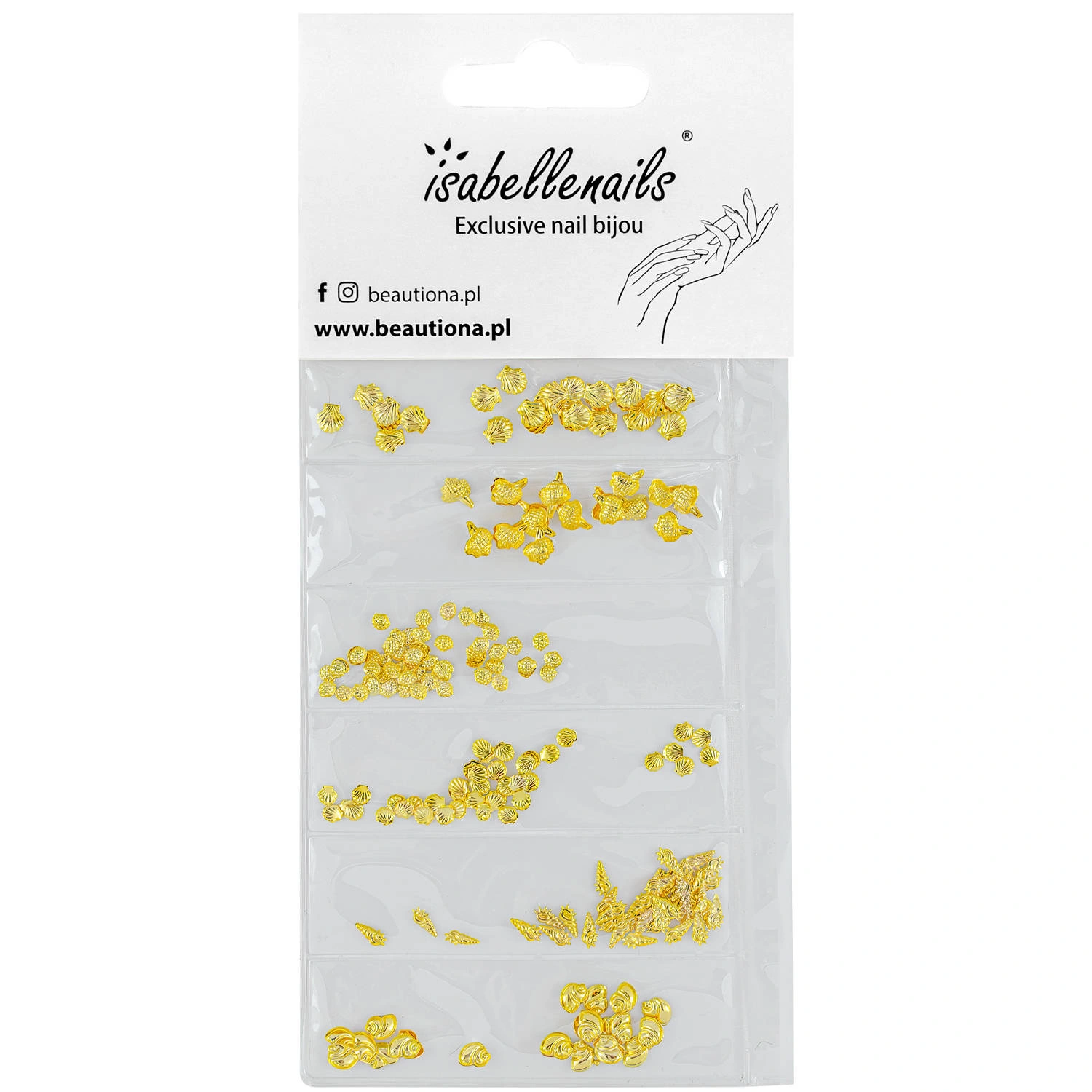 Ozdoby do paznokci, muszelki morskie złote 3D 200 sztuk