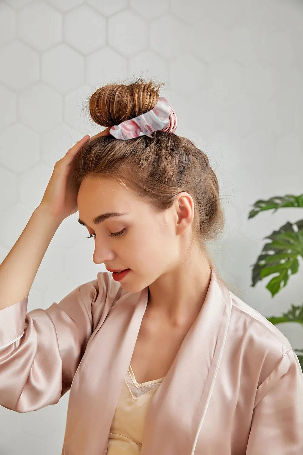 - Otwórz scrunchie i zabezpiecz włosy związując je kilkukrotnie przy głowie