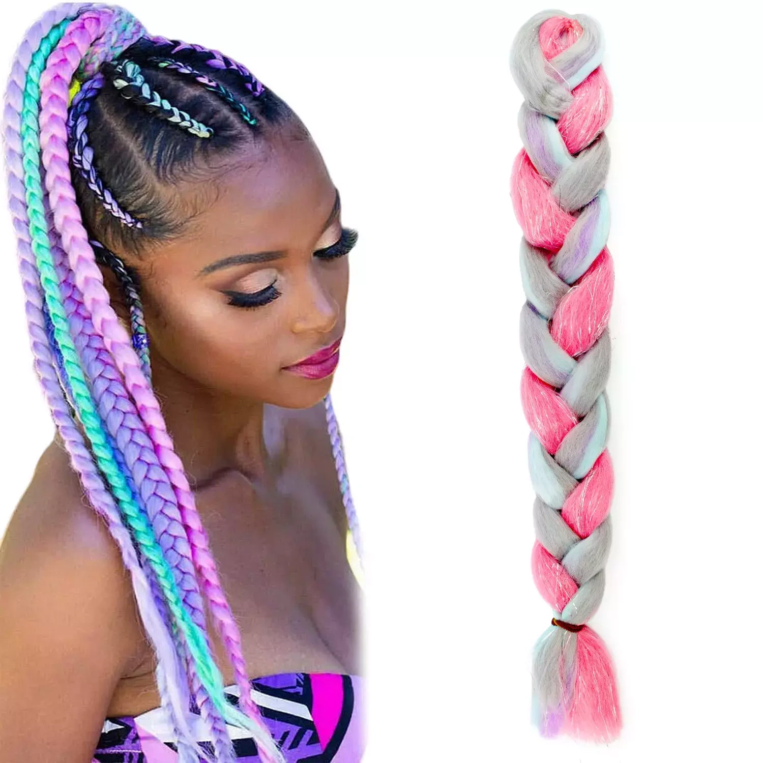 Pastelowe włosy syntetyczne do warkoczyków błyszczące