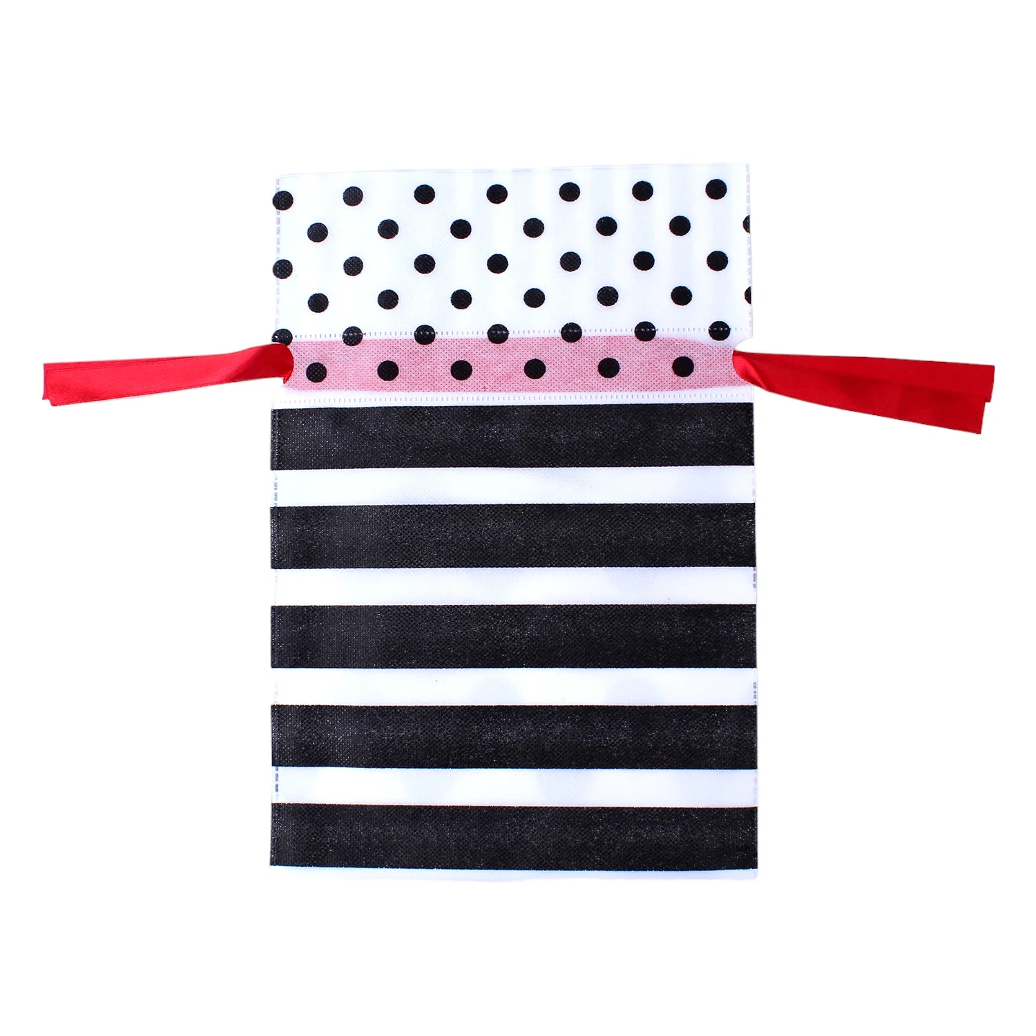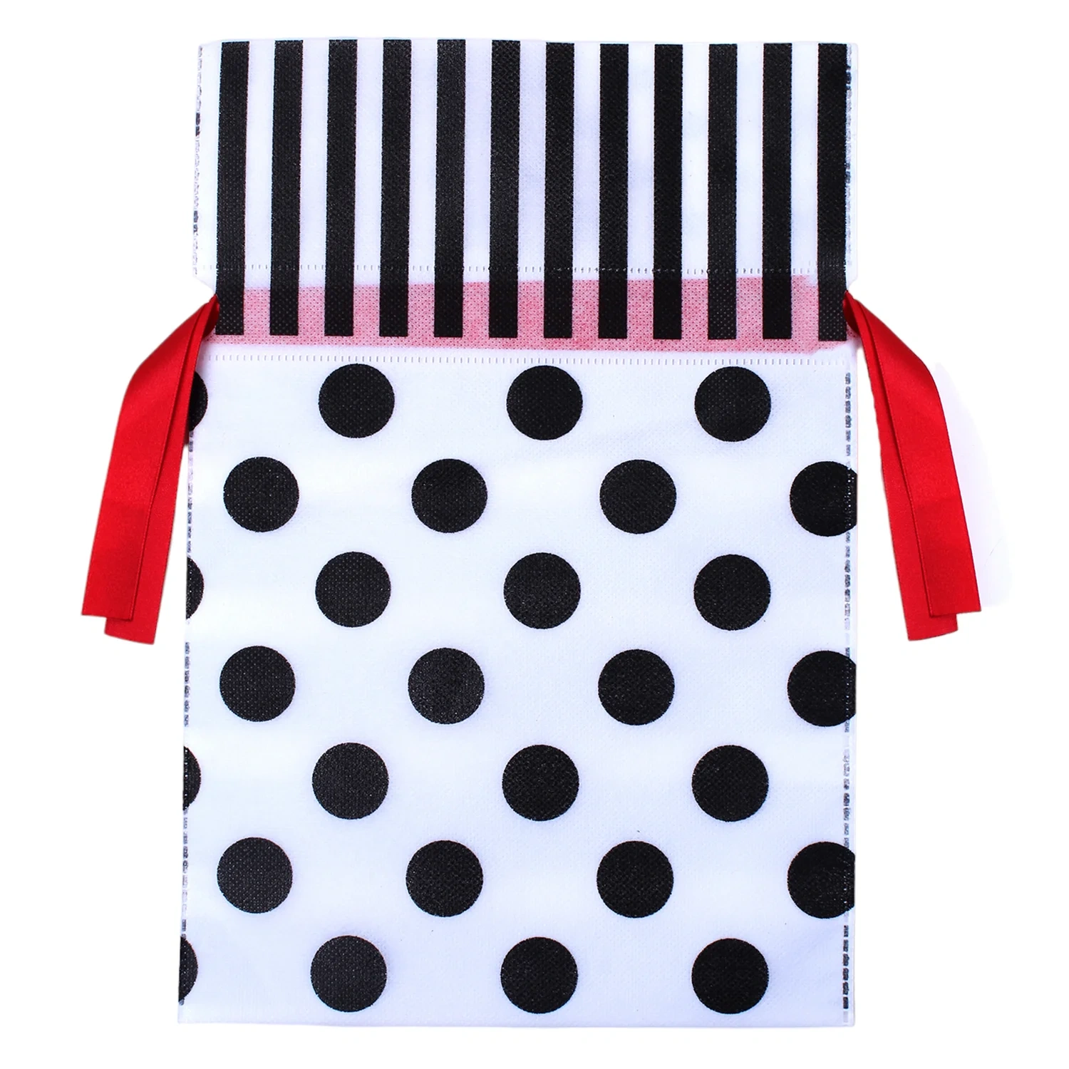 Torebka jest udekorowana pięknym wzorem w kontrastujących kolorach biało-czarnych oraz posiada praktyczną wstążkę do wiązania. Całość prezentuje się w nowoczesnym i eleganckim stylu.