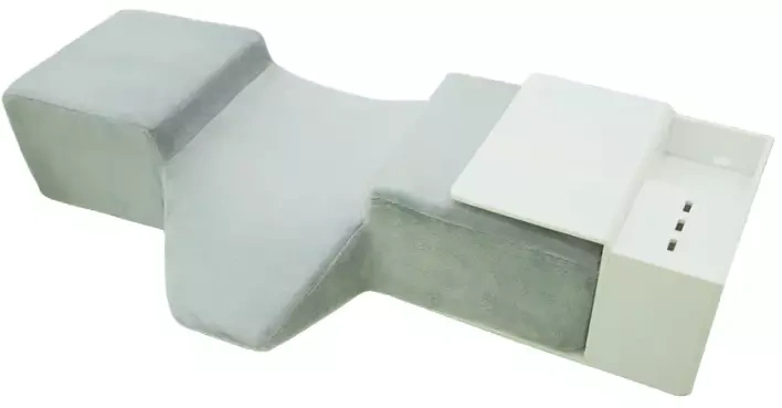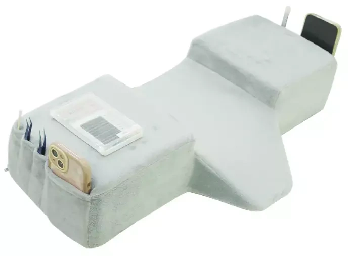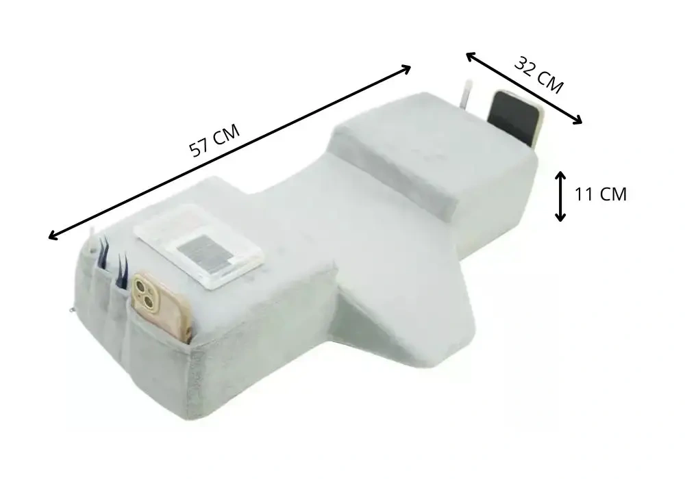 Poduszka pod głowę z kieszonkami do przechowywania niezbędnych narzędzi podczas wykonywania zabiegu przedłużania rzęs.